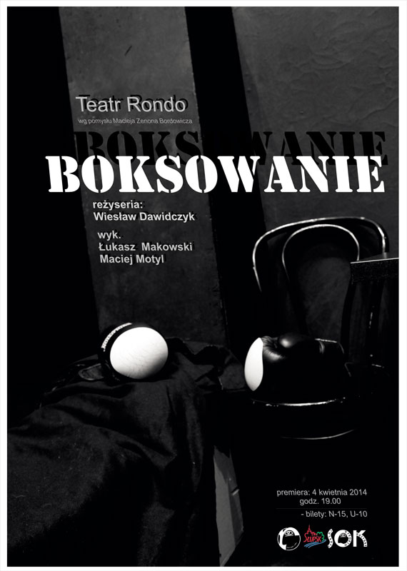 W piątek 4 kwietnia o godz. 19:00 w Teatrze Rondo odbędzie się premierowy spektakl grupy teatralnej „Pivetta”. Publiczność zobaczy przedstawienie „Boksowanie” oparte na pomyśle tekstowym Macieja Zenona Bordowicza w reżyserii Wiesława Dawidczyka.