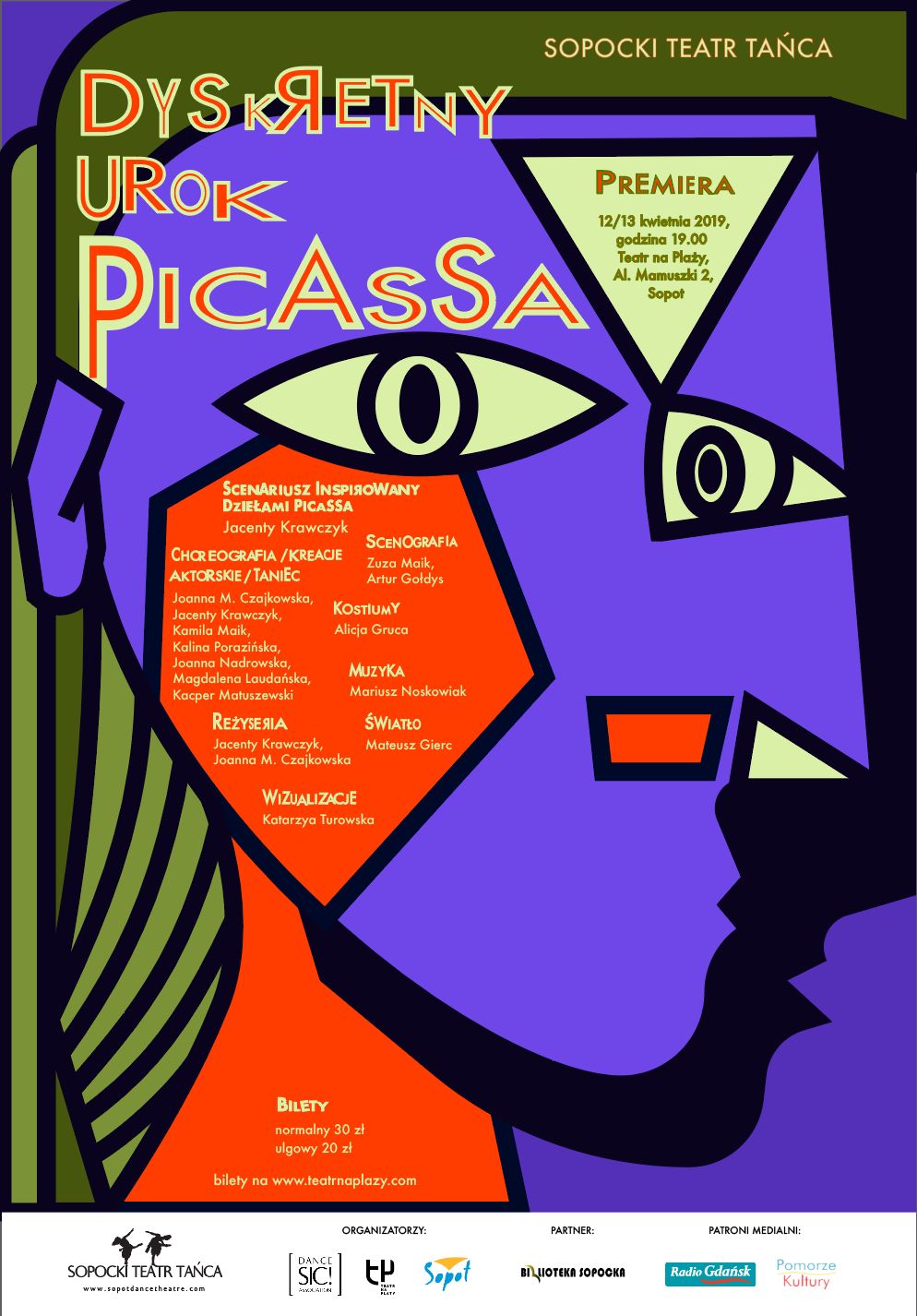 Inspiracją dla artystów Sopockiego Teatru Tańca do spektaklu pt.”Dyskretny urok Picassa” jest oczywiście postać Pabla Picassa, ur. w 1881 r. w Maladze, hiszpańskiego malarza, grafika, rzeźbiarza, uznawanego za jednego z najwybitniejszych artystów XX wieku, genialnego twórcę sztuki nowoczesnej. Jego wszechstronna, niezwykle bogata twórczość jest niekończącą się inspiracją dla artystów z różnych dziedzin sztuki w XX i XXI w. Picasso – twórca nie tylko obrazów, ale także grafik, ceramiki, rzeźb, scenografii, ilustracji, jako przedstawiciel takich prądów w sztuce jak realizm, surrealizm, kubizm dadaizm, jest doskonałą inspiracją do stworzenia żywych obrazów scenicznych w formie interdyscyplinarnego nowoczesnego widowiska, w duchu wielkiego artysty, jego wszechstronnej stylistyki. Wybrane dzieła z różnych okresów, od subtelnej formy, naturalizmu przez kubistyczną deformację, dekonstrukcję, karykaturę, po surrealistyczną abstrakcyjną ekspresję, wyznaczą dla twórców STT formę o zróżnicowanej stylistyce ruchomych obrazów przedstawienia o ponadczasowym charakterze. Choreografia będzie efektem pracy aktorów-tancerzy, wg autorskiej swobodnej interpretacji i koncepcji z pogranicza performance, tańca, kreacji aktorskiej i dramaturgii teatralnej – w duchu surrealistyczno-kubistycznym.