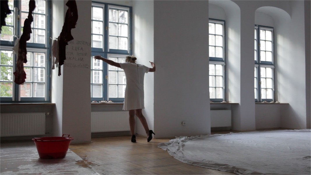 Performans AKTY zrealizowałam w oparciu o prawdziwe historie osób dotkniętych przemocą w rodzinie. To moja odpowiedź na przeczytane listy i rozmowy z ludźmi, którzy zaznali przemocy. Jest też inspirowany warsztatami artystycznymi przeprowadzonymi w ośrodkach pomagających osobom doświadczającym przemocy, podczas których mogłam poznać ich emocjonalność, delikatność i zarazem siłę. Nie chcę wyrażać swojej opinii, chcę swoimi działaniami pozwolić mówić tym, którzy głosu nie dostają, nie są w stanie krzyczeć.To zapętlenie, niemoc, cisza, fragmenty tekstów, zanikanie, wyjście, obrazy i kolejne akty.