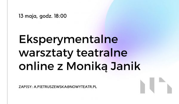 📧 W związku z prowadzeniem warsztatów na zewnętrznej platformie, obowiązują zapisy. Informacje na temat chęci wzięcia udziału w zajęciach oraz pytania prosimy kierować drogą elektroniczną na adres: a.pietruszewska@nowyteatr.pl
