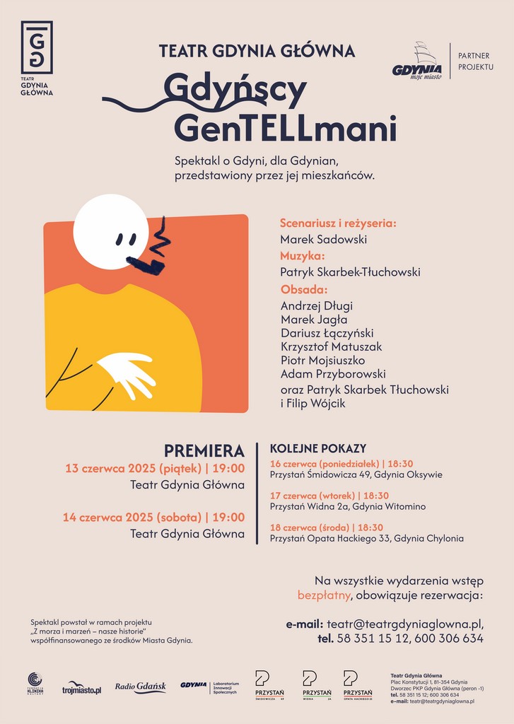 Teatr Gdynia Główna i Miasto Gdynia zapraszają na premierę i wyjątkowe pokazy w ramach projektu „Z morza i marzeń – nasze historie”: Gdyńscy GenTELLmani. Spektakl o Gdyni, dla Gdynian, przedstawiony przez jej mieszkańców.