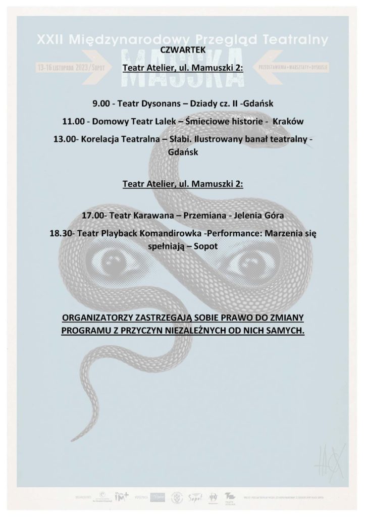 - Teatr Karawana, czyli Teatr Osób Uzależnionych z Jeleniej Góry. Odwiedzą festiwal ze spektaklem pt. „Przemiany”,