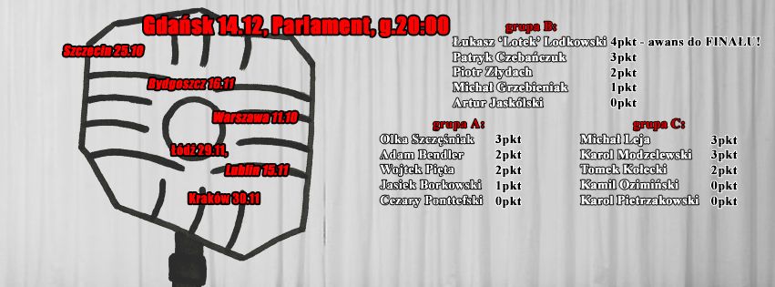 Dodatkowe emocje zapewni fakt, że podczas każdej imprezy komicy będą rywalizować ze sobą w parach, walcząc o udział w imprezie finałowej, na której wyłoniony zostanie zwycięzca pierwszej edycji Polskiej Ligi Stand-upu.