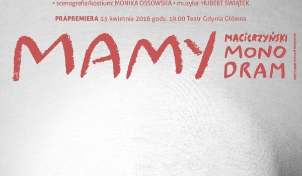 Właśnie o pierwszych miesiącach macierzyństwa i związanym z nim emocjonalnym rollercoasterze opowiada ten spektakl. Jest śmieszny, straszny i wzruszający – tak jak to w prawdziwym życiu bywa. W rolę matki wcieli się Magdalena Bochan-Jachimek, aktorka i reżyserka, związana z Centrum Kultury w Gdyni i Teatrem na Plaży, prywatnie mama dwójki kilkuletnich dzieci. Scenariusz napisał jej mąż, trójmiejski satyryk i dramaturg, Szymon Jachimek. Spektakl wyreżyserował Jakub Ehrlich, aktor Teatru Miniatura, od niedawna również poznający świat smoczków i zabawek edukacyjnych.