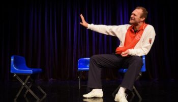 Aktor teatru Miniatura w roli reżysera monodramu.