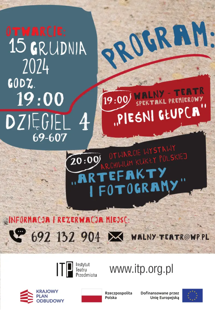 19:00 – Otwarcie Archiwum Kukły Polskiej – premiera spektaklu „Pieśni Głupca” Walny Teatr
