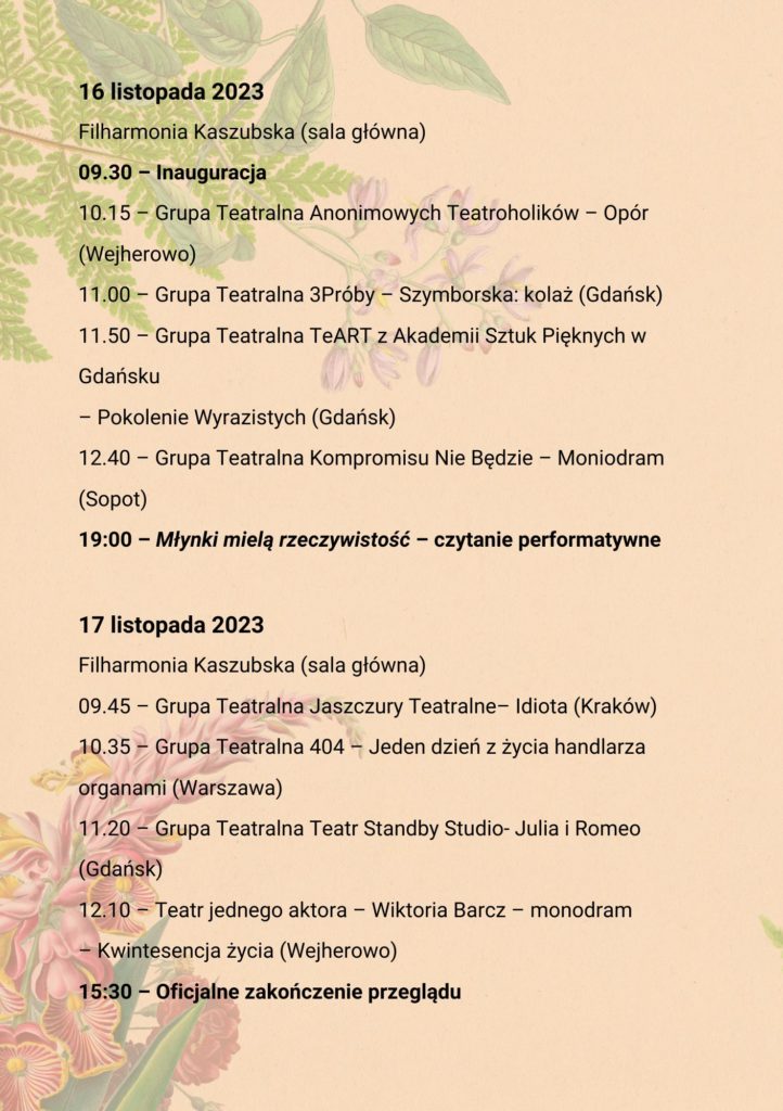 Przed nami więc prawdziwa teatralna uczta! Zachęcamy, by choć uszczknąć z niej kawałek i wybrać się na wybrane spektakle. Wierzymy, że młodzi, utalentowani ludzie oczarują publiczność swoim spojrzeniem na teksty Wisławy Szymborskiej i Olgi Tokarczuk. To bowiem twórczość noblistek będzie motywem przewodnim tegorocznej edycji przeglądu. Odbędzie się on zaś pod hasłem: „W poszukiwaniu opowieści uniwersalnej. Wisława Szymborska i Olga Tokarczuk”.