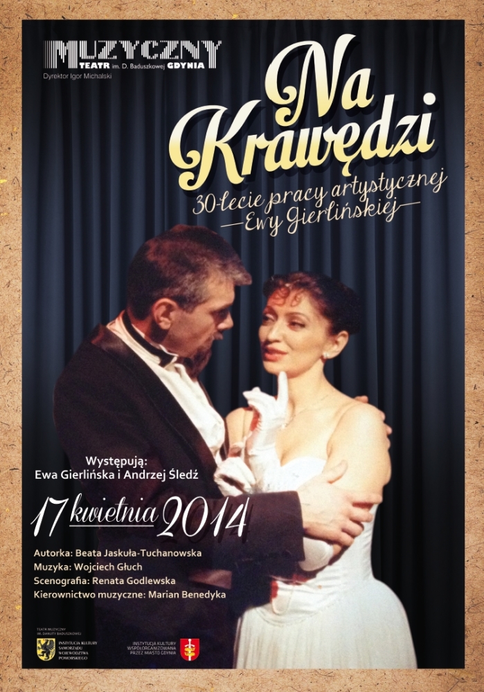 17 kwietnia o godz. 19 na Nowej Scenie Teatru Muzycznego odbędzie się premiera jednoaktówki „Na krawędzi”, przygotowanej z okazji 30-lecia pracy artystycznej Ewy Gierlińskiej.