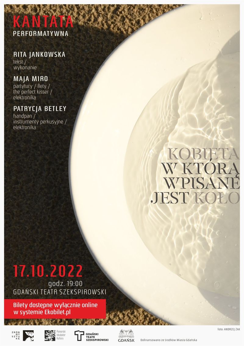Kantata performatywna „Kobieta, w którą wpisane jest koło” to intymna relacja z samotnej, długiej wędrówki po górach, podczas której otwiera się przestrzeń na rozliczenie się z kobiecą miłością do mężczyzny. Kształtu jaki miała do tej pory, i jej kształtu wyobrażonego.