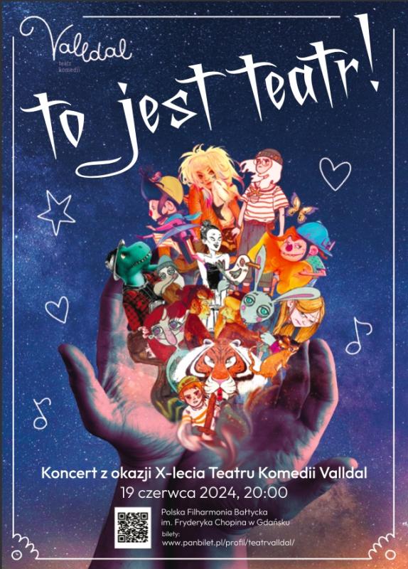 Wielki Koncert z okazji X-lecia Teatru Komedii Valldal – największego niezależnego teatru na Pomorzu, którego spektakle obejrzały już setki tysięcy Widzów! Mało kto potrafi poprawnie zapisać naszą nazwę, ale na pewno wszyscy słyszeliście o „Wikingach. Musicalu nieletnim”, „Hejt School Musicalu”, „Faunie”, czy „Piratach. Musicalu niesuchym”. A może mieliście szansę obejrzeć „Emigrantkę”, „Bakteriusza i Próchniaka”, „Psiakościa”, czy „Marvina”… Nasz Teatr to również fantastyczna artystyczna społeczność, która zrzesza obecnie blisko 200 osób w kilkunastu grupach warsztatowych. Gramy, tańczymy, śpiewamy, a nawet lepimy w glinie, bo sztuka to nasz sposób na życie.