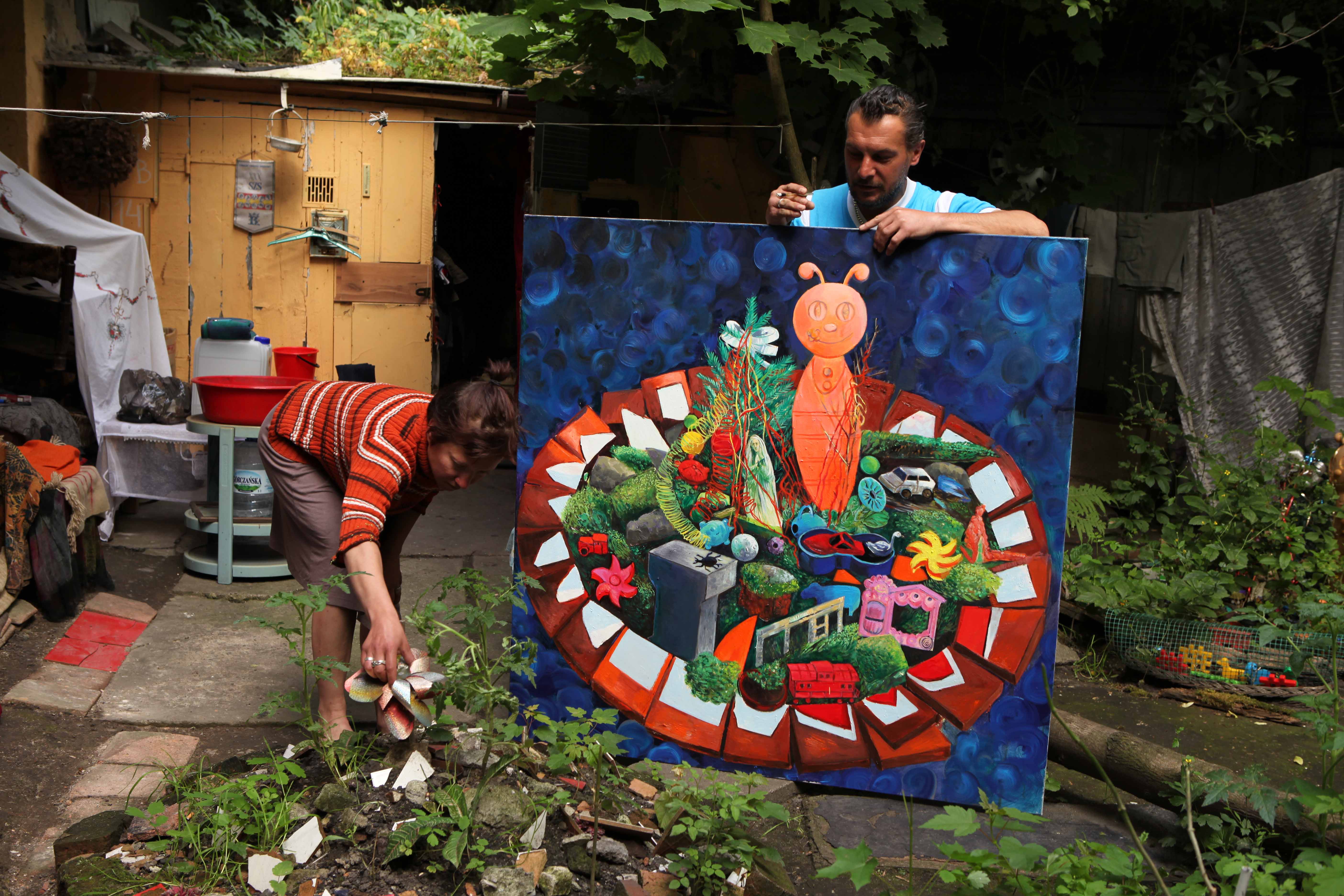 Zaprosiłam moich sąsiadów, żeby pojechali ze mną zrobić projekt artystyczny do Oliwy nad morze, gdyż w tym roku tematem PARKOWANIA jest DOM. Zaproponowałam im, żebyśmy zrobili wspólnie instalację, taką jaka jest pod ich domem oraz pokazali moje obrazy i fragmenty filmu, który o nich robię.
