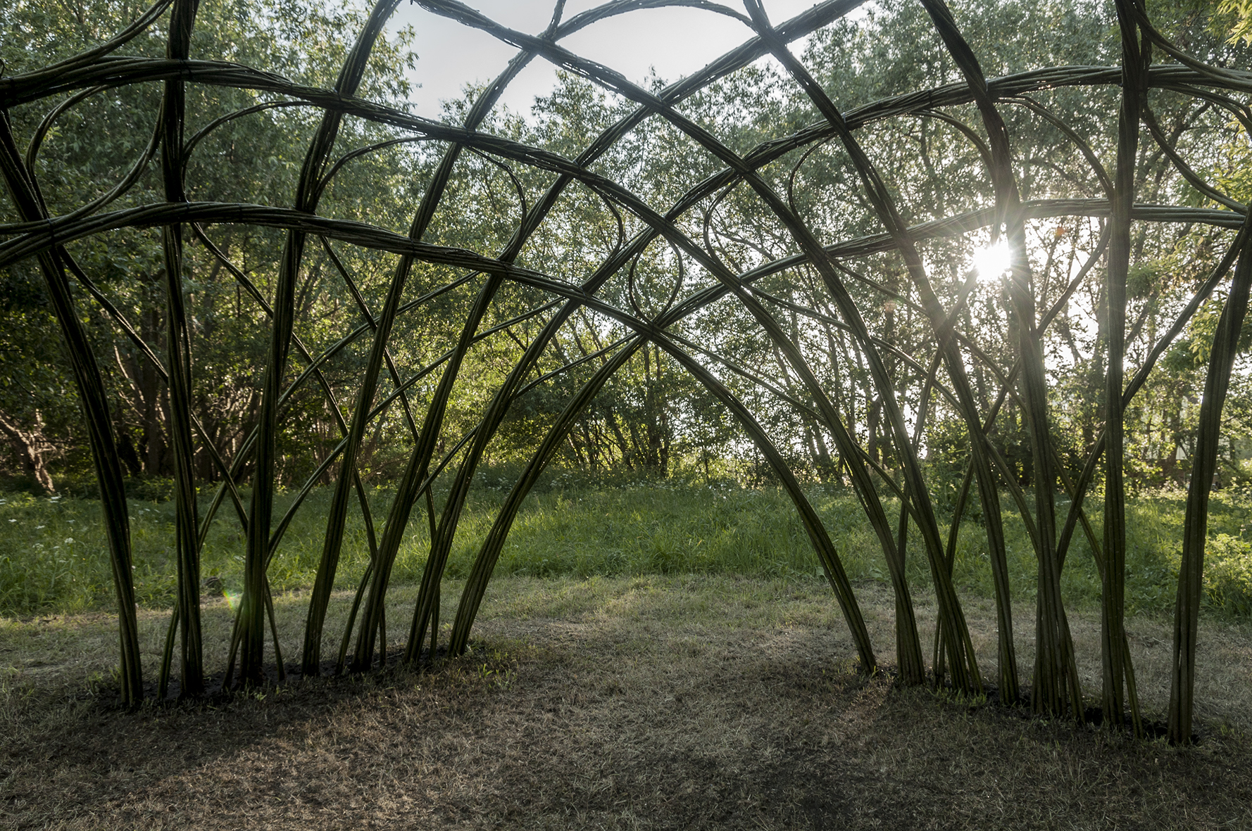 „Altanę Westchnień” od ponad 3 tygodni można już podziwiać przy Stawie Młyńskim w Starej Oliwie. Jest to żywa architektura upleciona z wierzby wiciowej (Salix viminalis) o zmiennym wyglądzie zależnym od pór roku, teoretycznie długowieczna jak drzewa. W okresie jesienno-zimowym funkcjonuje jako szkielet a wiosenno-letnim pokrywa się gęstym zielonym płaszczem liści. Altana została usytuowana nad Stawem Młyńskim, między rokokowym parkiem a lasami oliwskim. Ta ujarzmiona natura swoją nazwą wpisuje się w szlak charakterystycznych punktów ogrodowo-leśnej przyrody oliwskiej: Drogę Filozofów, Groty Szeptów, Dolinę Radości czy Drogę do Wieczności. Kopułowy ażur altany tworzy gęsta siatka wierzbowych prętów o mocnej bazowej konstrukcji i miękkich liniach ornamentu. Oliwa ma teraz romantyczny zakątek dla zakochanych. Mam nadzieję, że będą z niego korzystać leżąc na trawie pod rozpostartą kopułą i wpatrując się w gwiazdy widoczne między liniami gałęzi. Teren przy Stawie Młyńskim jest jednym z ulubionych miejsc wielbicieli picia napojów alkoholowych na świeżym powietrzu. Na szczęście piękne widoki są za darmo i dla wszystkich. Dlatego jedyne westchnienia jakie można tu na razie usłyszeć od spacerowiczów brzmią: „Tylko żeby nikt nie