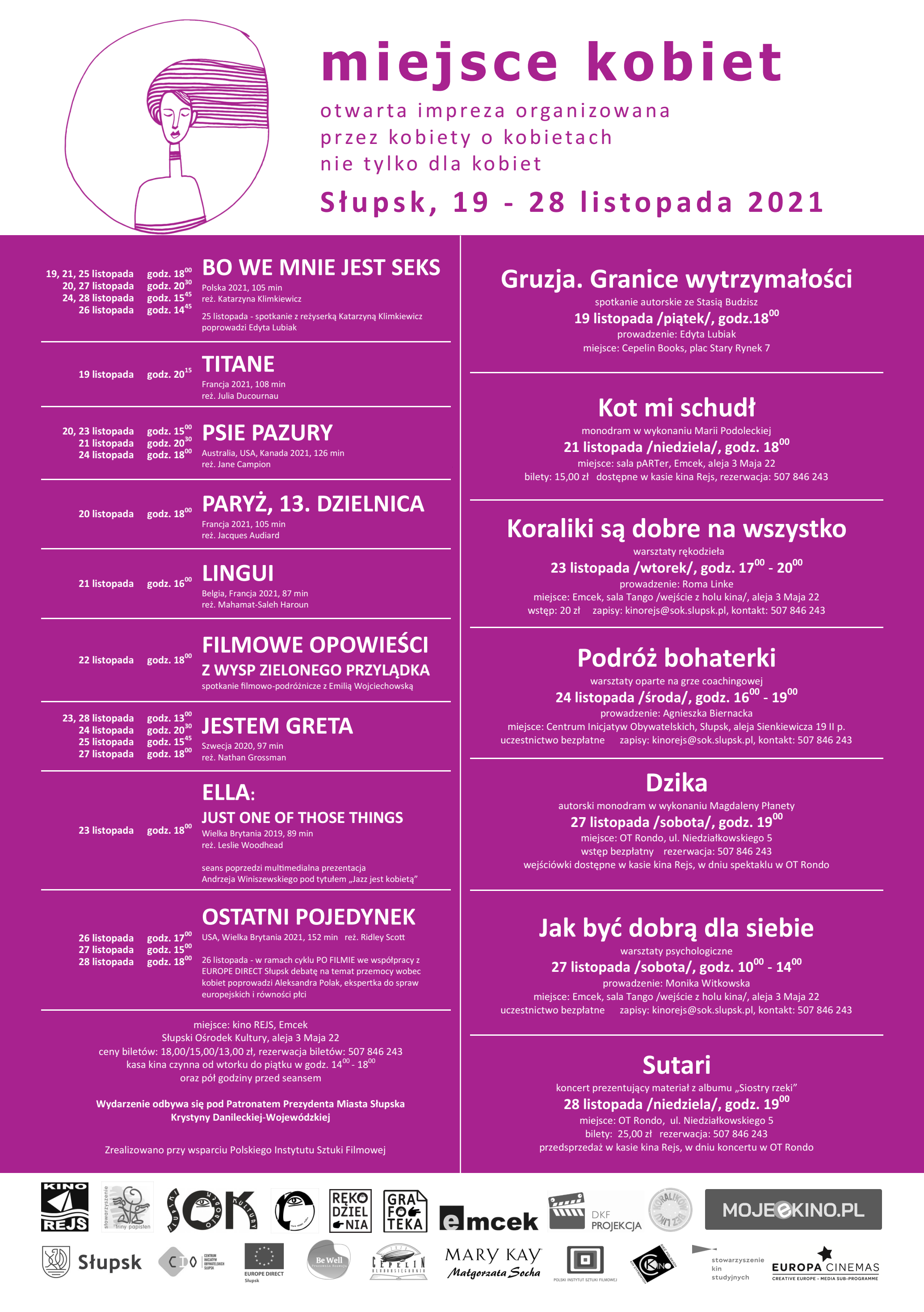 Kino Rejs wraz ze Stowarzyszeniem Triny Papisten, Kluboksięgarnią Cepelin, EUROPE DIRECT Słupsk i pozostałymi partnerami festiwalu serdecznie zaprasza do udziału w 16. edycji MIEJSCA KOBIET.