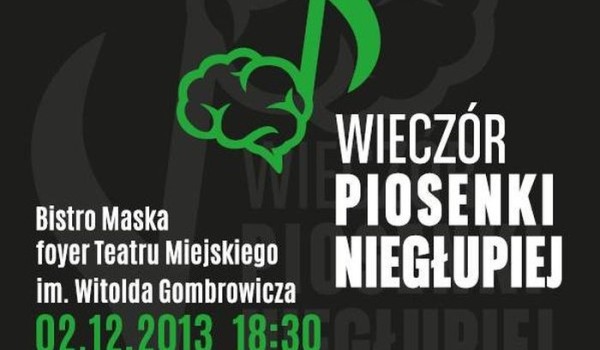 Wieczór Piosenki Niegłupiej to próba powrotu do czasów świetności polskiej piosenki, kiedy to genialni tekściarze wespół z fantastycznymi kompozytorami pisali utwory dla nader zdolnych wykonawców. 2 grudnia w Gdyni widzowie poznają piosenki napisane na tę okazję przez mistrzów gatunku: Artura Andrusa, Piotra Bukartyka, Grzegorza Tomczaka, Michała Zabłockiego, Roberta Kasprzyckiego i wielu innych.