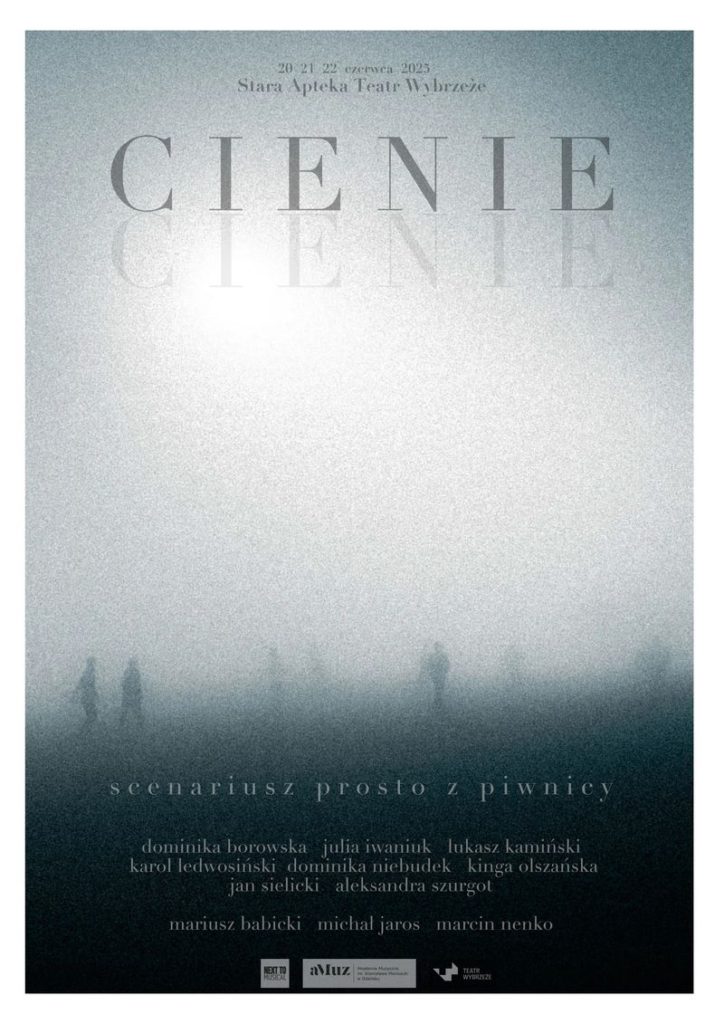 Koło Artystyczno-Naukowe „Next to Musical”, Akademia Muzyczna im. Stanisława Moniuszki w Gdańsku we współpracy z Teatrem Wybrzeże zapraszają na gościnne pokazy spektaklu CIENIE scenariusz prosto z piwnicy.