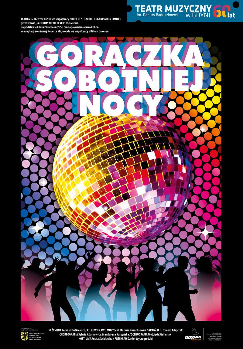 TEATR MUZYCZNY w GDYNI we współpracy z ROBERT STIGWOOD ORGANISATION LIMITED przedstawia „SATURDAY NIGHT FEVER” The Musical. Na podstawie Filmu Paramount/RSO oraz opowiadania Nika Cohna. W adaptacji scenicznej Roberta Stigwooda we współpracy z Billem Oakes’em.