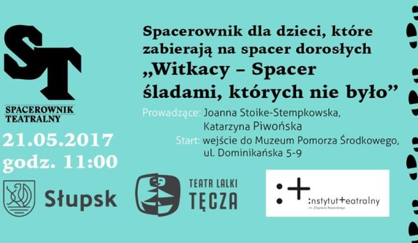 „Witkacy – spacer śladami, których nie było” to spacer przeznaczony dla dzieci i ich rodziców zawierający zestaw zabaw i gier rodzinnych z teatrem w tle. Autorki spaceru w przystępny i intrygujący najmłodszych uczestników sposób będą starały się tropić, w jaki sposób, gdzie i kiedy rozwijała się słupska Witkacomania!”