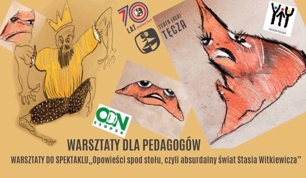 Teatr Lalki „Tęcza” oraz Ośrodek Doskonalenia Nauczycieli w Słupsku zapraszają do udziału w bezpłatnych warsztatach pedagogiczno-teatralnych, wprowadzających w tematykę spektaklu „Opowieści spod stołu, czyli absurdalny świat Stasia Witkiewicza” inspirowanego młodzieńczymi dramatami Witkacego w reżyserii Tomasza Kaczorowskiego.