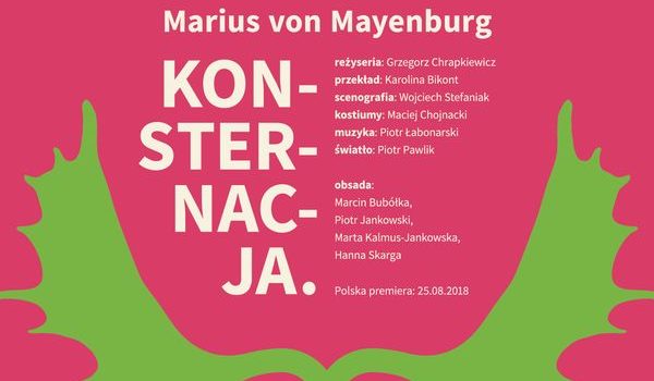 Sytuacja zmienia się dynamicznie, przybierając różne odcienie absurdu. „Konsternacja” jednego z najważniejszych dramaturgów młodego pokolenia – Mariusa von Mayenburga, to tylko z pozoru lekka komedia. Poślizg tożsamości i ciągle zmieniająca się narracja są najczystszym tematem spektaklu i skutkują odpowiednią alegorią naszych czasów.