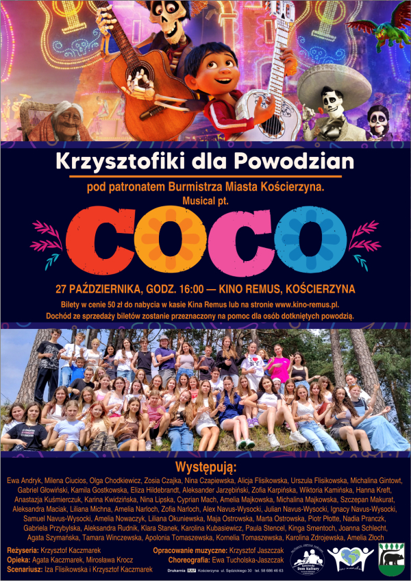 W niedzielę, 27 października br., w kościerskim Kinie Remus odbędzie się wyjątkowy, charytatywny pokaz musicalu pt. „COCO” pod hasłem „Krzysztofiki dla Powodzian”. Celem wydarzenia jest wsparcie mieszkańców Gminy Radków w Kotlinie Kłodzkiej, która zmaga się z usuwaniem dotkliwych skutków powodzi.