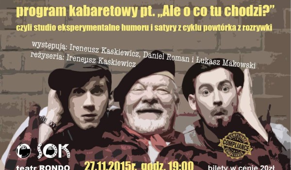 Program kabaretowy pt. ” Ale o co tu chodzi?” , czyli studio eksperymentalne humoru i satyry z cyklu powtórka z rozrywki już dzisiaj w Teatrze Rondo.