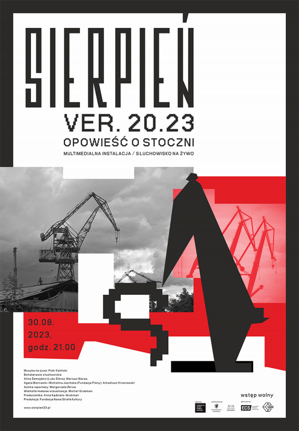 „Sierpień ver. 20.23” to współczesna opowieść o stoczni, jej przestrzeniach oraz ludziach, którzy te przestrzenie tworzą. Historia opowiedziana w kontekście wydarzeń, które miały miejsce w sierpniu 1980 r. To instalacja multimedialna, łącząca słuchowisko, koncert i wielkoformatowe wizualizacje na elewacji dawnej hali stoczniowej 49A.