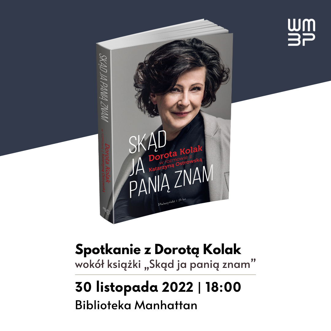 Spotkanie z wybitną polską, gdańską aktorką Dorotą Kolak. Rozmowę z aktorką wokół nowej książki „Skąd ja panią znam. Dorota Kolak w rozmowie z Katarzyną Ostrowską”, która ukazała się pod koniec października nakładem wydawnictwa Prószyńki i S-ka poprowadzi Bartosz Filip. „Ciekawa, niebanalna, ale i zwyczajna – rozmowa z Dorotą Kolak, wyjątkową aktorką, ale przede wszystkim niezwykłą kobietą. O strachu przed czerwonym dywanem, o niewymawialnym „r”, o bzowej babuleńce i panu Andersenie, o tym, że nie warto bać się Virginii Woolf…, o nalewkach męża i domu wśród sosen. A przede wszystkim o aktorstwie i rolach nie tylko tych na scenie, ale też w życiu. O byciu żoną, matką i babcią, o kąpielach w jeziorze i odnawianiu mebli. Rozmowy (Doroty Kolak i Katarzyny Ostrowskiej) odbywały się w różnych miejscach i okolicznościach, często przerywane telefonami od córki, niespodziewanym wyjazdem, a ostatnio pandemią. To prawdziwie babska opowieść o kilkunastu latach spotkań przy kawie i herbacie, bywało że niedokończonych, bez dat i chronologii”. (www.proszynski.pl)
