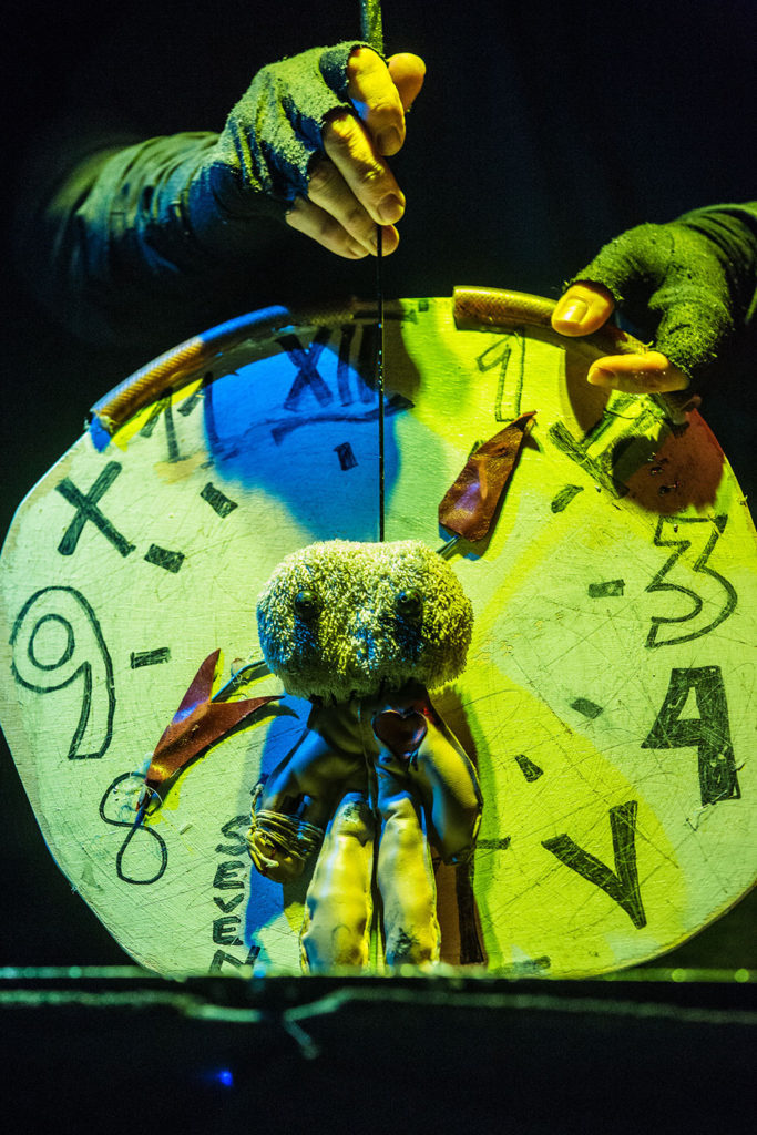 To spektakl złożony z siedmiu siedmiominutowych opowieści, wyreżyserowanych przez siedmiu reżyserów z różnych zakątków świata. Wszystkie są prezentowane przez jednego artystę-lalkarza: Dawida Zuazole. “Gra czasu” to coś więcej niż siedem oddzielnych opowieści. Z minuty na minute widzowie odkrywają, że pozornie niezależne historie układają się w jedna logiczna całość. Do budowy lalek, wymyślnych mechanizmów jak i scenografii tradycyjnie już, Dawid wykorzystał materiały z recyklingu łącząc wszystkie elementy za pomocą unikalnej lalkarskiej konsoli sterującej własnego pomysłu. Tytuły poszczególnych etiud: STRACH NA WRÓBLE, ŚMIERĆ, DZIWADŁO, ROBAL, WAMPIR, OBCY, LALKA.