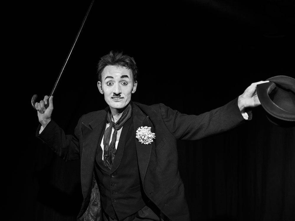 Być jak Charlie Chaplin” to wulkan energii, w którym Mateusz Deskiewicz z Teatru Muzycznego w Gdyni pokazuje pełen wachlarz swych umiejętności: tańczy, śpiewa, wzrusza, rozśmiesza i prowokuje do refleksji. Na scenie towarzyszy mu przy pianinie Artur Guza – muzyk, kompozytor i także aktor Teatru Muzycznego w Gdyni.