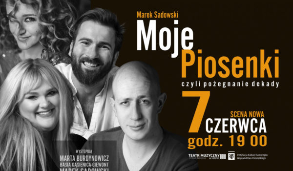 Kiedy kilka lat temu, gdyńscy widzowie mieli okazję obejrzeć premierę komediowego koncertu „Chłopem i Babą stworzył nas Bóg”, w komentarzach dziennikarzy i Widzów, pojawiły wzmianki o kabarecie piosenki najwyższej próby oraz porównania do językowej jakości Kabaretu Starszych Panów. Grany z powodzeniem od wielu lat koncert, do dziś wyprzedaje się na pniu, zawsze kiedy tylko pojawi się na trójmiejskich scenach. Od czasu premiery „Chłopa i Baby”, kolejne przedsięwzięcia Marka Sadowskiego (jak choćby grany w naszym Teatrze koncert „Z pamiętnika samotnika”), określane są często mianem „uczty słowa”. Wszyscy, którym tęskno do piosenek z tekstem, na pewno i tym razem będą usatysfakcjonowani. Z okazji 10 lat obecności na scenie naszego Teatru, autor zaprezentuje Państwu program składający się z kilkunastu nowych piosenek oraz autorskich przekładów i adaptacji (piosenka francuska, songi musicalowe). Usłyszymy także kilka „gościnnych piosenek”, znanych z poprzednich koncertów. A wszystko to w towarzystwie najlepszych trójmiejskich Muzyków, Koncert – przeplatanym żywym dialogiem z Publicznością – nie będzie jednak typowym recitalem. Będzie to wydarzenie na trzy głosy. Oprócz Marka Sadowskiego, na scenie zobaczymy trzy nieprzeciętne osobowości. Pierwszą z nich będzie aktorka i wokalistka, zwyciężczyni ostatniej edycji The Voice of Poland – Marta Burdynowicz. Drugą aktorka i wokalistka, współpracująca z czołowymi polskimi artystami (Grzegorz Turnau, Kuba Badach) – Basia Gąsienica Giewont. Trzecią zaś solista naszego Teatru oraz najsłynniejszy gdyński multiinstrumentalista – Krzysztof Wojciechowski.