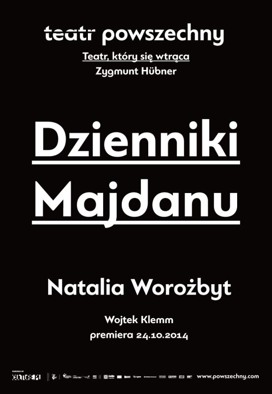 Dzienniki Majdanu poczyniła Natalia Worożbyt – dramaturg i scenarzystka. – Przez trzy miesiące członkowie ruchu Nowy Dramat Ukraiński przeprowadzali wywiady, zbierali świadectwa i materiały o ludziach oraz wydarzeniach na Majdanie – mówi Natalia Worożbyt. – Jedyną wadą autorów projektu jest to, że całym sercem wspierają Majdan i są bezpośrednimi świadkami wydarzeń. Sztuka nie ma zakończenia, tak jak nie ma na razie końca ukraińska walka o wolność i sprawiedliwość.