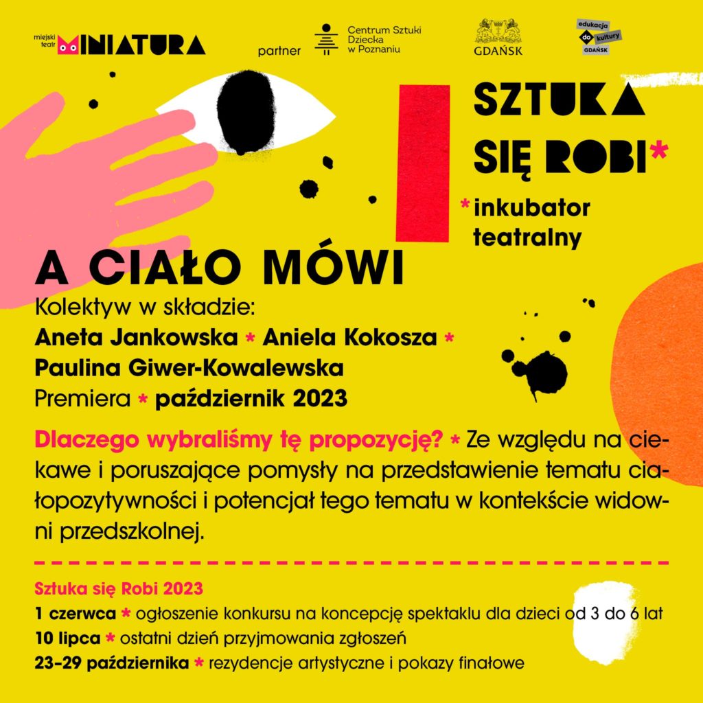 Przy okazji zapowiadamy, że konkurs na koncepcje spektaklu dla dzieci od 3 do 6 lat ogłosimy 1 czerwca, a kolejna edycja Sztuka się Robi odbędzie się od 23 do 29 października.
