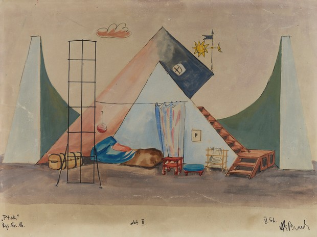 (fot. Ptak, Jerzy Szaniawski; reż. Zygmunt Hübner, scen. Ali Bunsch; Teatr Wybrzeże w Gdańsku, prem. 5 VII 1956; Projekt ze zbiorów Muzeum Narodowego w Gdańsku)