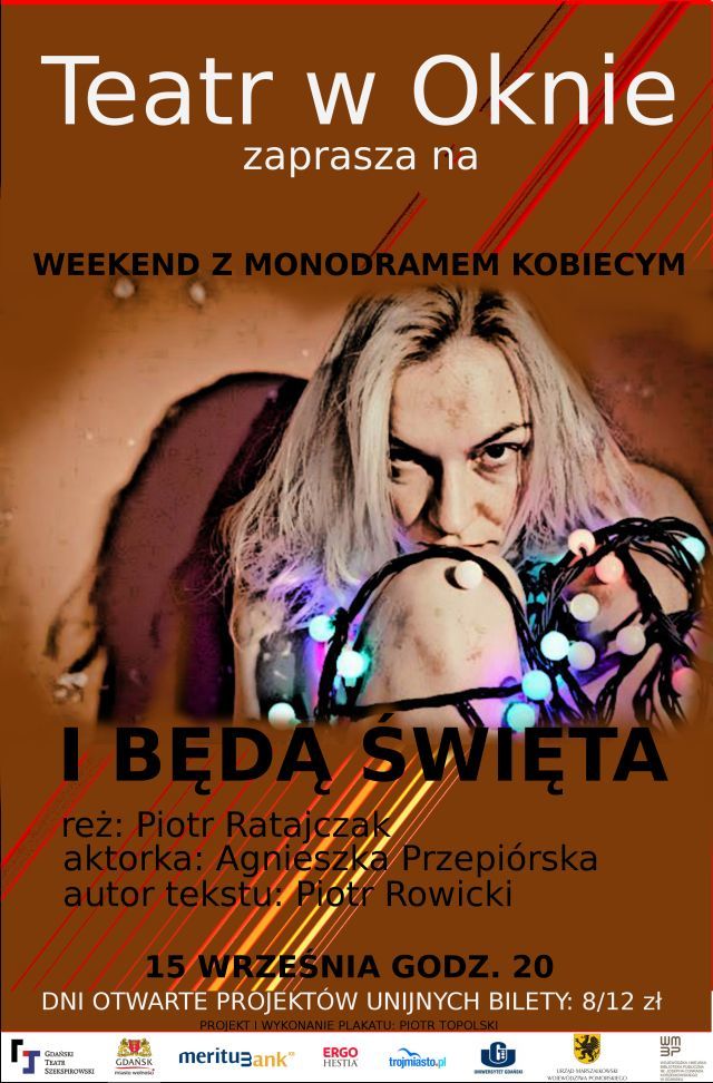 15 września o godz. 20 w Teatrze w Oknie odbędzie się monodram Piotra Rowickiego „I będą święta” w wykonaniu Agnieszki Przepiórskiej, w reżyserii Piotra Ratajczaka.