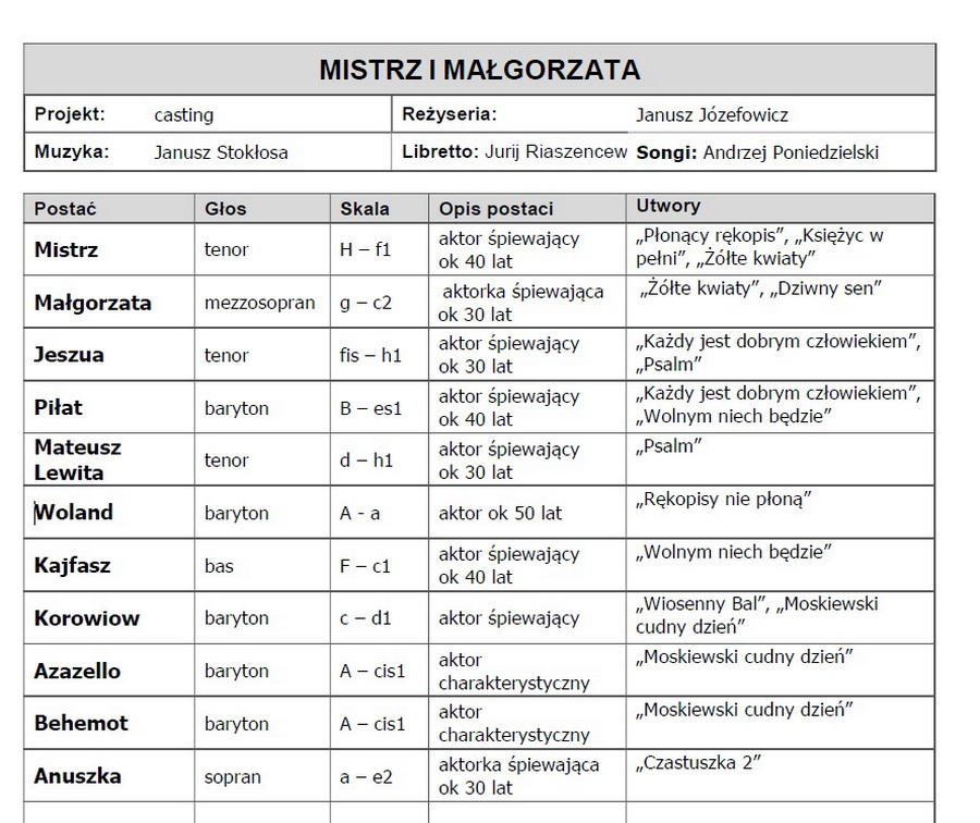 Teatr Muzyczny w Gdyni poszukuje aktorów do musicalu „Mistrz i Małgorzata” w reżyserii Janusza Józefowicza. Jakie są wymagania? Sprawdzane będą umiejętności aktorskie, wokalne i taneczne. Zgłoszenia przyjmowane są do 15 maja 2021 r. Prapremiera została zaplanowana na 11 września 2021 r.