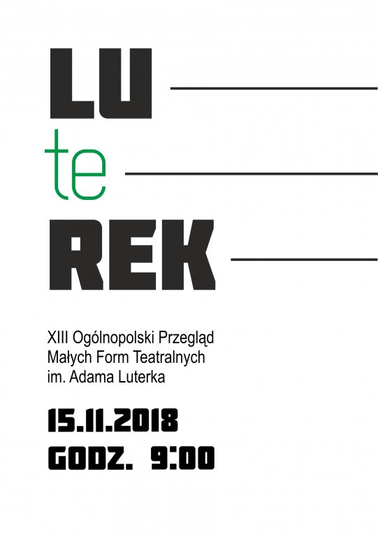 Zbliża się XIII OPMFT „Luterek”, dlatego spieszymy z informacją, że już dziś organizatorzy, czyli Wejherowskie Centrum Kultury i I Liceum Ogólnokształcące im. Króla Jana III Sobieskiego w Wejherowie, dzięki dużej dawce entuzjazmu oraz wierze w sens teatralnych spotkań, dzięki wsparciu instytucji i osób prywatnych, zapraszają na XIII Ogólnopolski Przegląd Małych Form Teatralnych im. Adama Luterka (OPMFT „Luterek”), który odbędzie się w dniach 15-17 listopada 2018 r. w Filharmonii Kaszubskiej oraz w auli I Liceum Ogólnokształcącego im. Króla Jana III Sobieskiego w Wejherowie.
