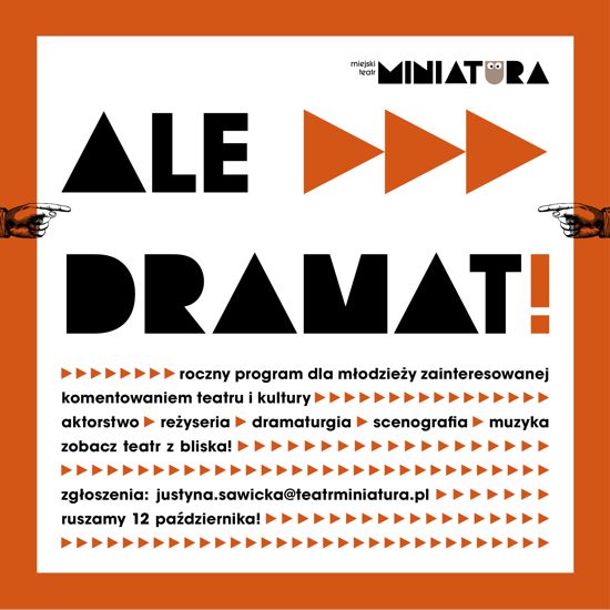 Ale dramat! to program, który w kompleksowy sposób zapoznaje uczestników z teatrem pod kątem różnych aspektów tej dziedziny sztuki: aktorstwo, reżyseria, scenografia, dramaturgia, muzyka, ruch sceniczny. Są to nie tylko spotkania warsztatowe (raz w miesiącu we wtorki w godz. 17.00–19.00), ale też m.in. uczestnictwo w próbach, spotkania z artystami, wizyty w pracowni plastycznej, a także czytanie tekstów dramatycznych i pisanie recenzji. Każdy miesiąc jest poświęcony innemu tematowi, który bywa eksplorowany w rozmaity sposób. Opiekę merytoryczną nad całym programem sprawuje Dział Literacki Teatru Miniatura.