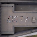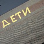 W hołdzie Ukrainie. Napis „DZIECI” napisany cyrylicą. Taki sam, jak przed zbombardowanym przez Rosjan teatrem w Mariupolu. Gdański Teatr Miniatura, Gdański Teatr Szekspirowski i Nowy Teatr w Słupsku.