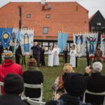 Sztandary, projekt plakatu, elementy scenografii: Karol Formela