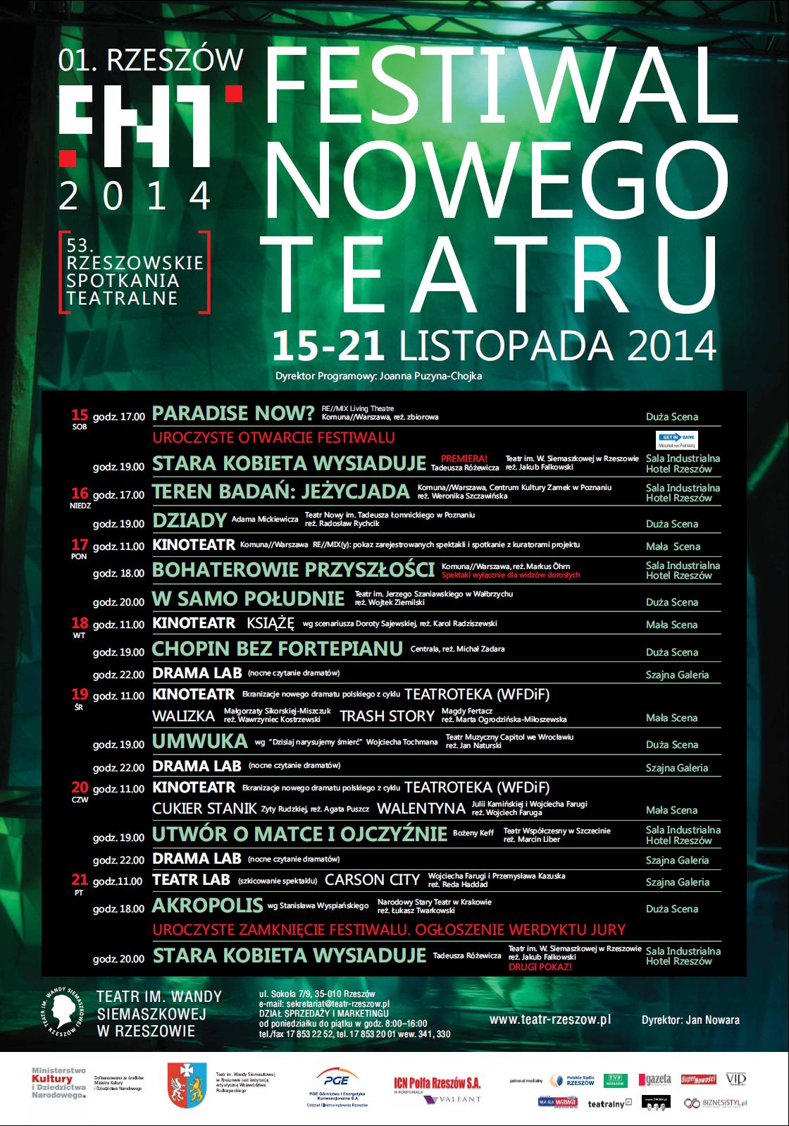 Nowym dyrektorem programowym Festiwalu Nowego Teatru w Rzeszowie jest Joanna Puzyna-Chojka, krytyk teatralny i teatrolog z Uniwersytetu Gdańskiego, współautorka gdyńskiego Festiwalu R@Port.