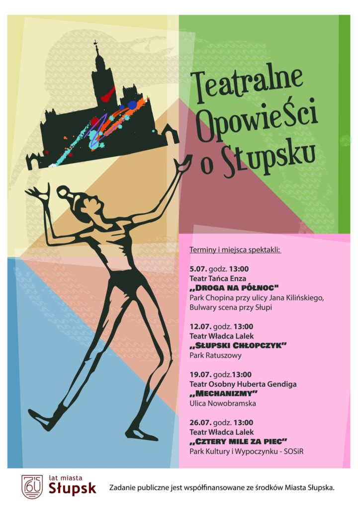 W różnych zakątkach Słupska zaprezentujemy cztery przedstawienia, inspirowane historią miasta — zarówno tą przedwojenną, jak i powojenną. Projekt nawiązuje do 760-lecia Słupska, 715-lecia nadania praw miejskich oraz 80-lecia osadnictwa ludności polskiej.