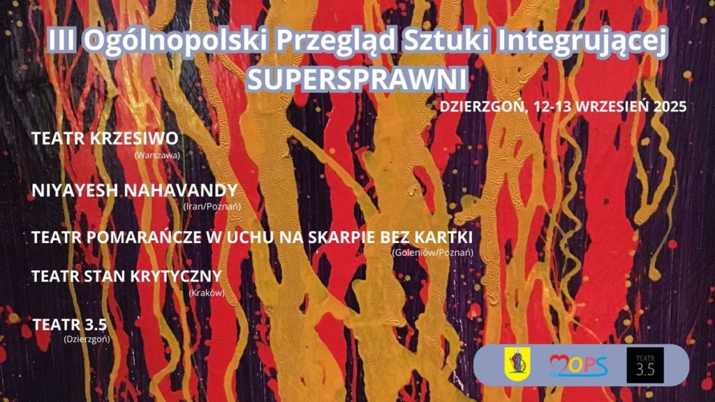 Tegoroczne hasło Supersprawnych to: „Halo! Czy mnie słychać?”. Przez dwa dni będziecie mogli zobaczyć spektakle i performance naszych teatralnych przyjaciół z całej Polski i nie tylko. Znajdzie się też czas na wspólne bycie i dyskusję.