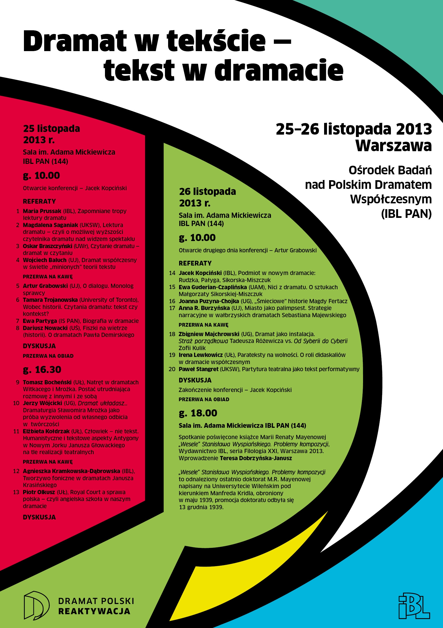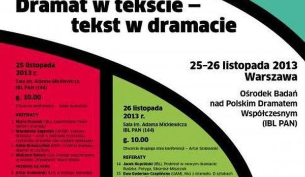 25-26 listopada 2013, Warszawa: Dramat w tekście – tekst w dramacie. Międzynarodowa konferencja poświęcona dramaturgii powojennej