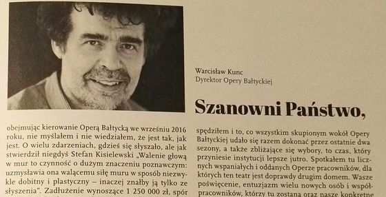 W sobotę, 23 czerwca, dyrektor Warcisław Kunc zadyrygował w Operze Bałtyckiej po raz ostatni. Publiczność miała okazję zapoznać się z darmowym folderem, podsumowującym w kontrowersyjny sposób dwa lata jego kadencji.