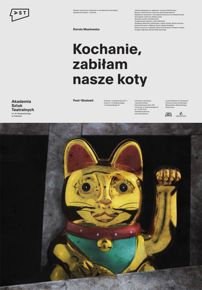 19:00 DS „Kochanie zabiłam nasze koty” reż. R. Dziwisz –  Akademia Sztuk Teatralnych w Krakowie