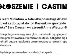 AktualnościTeatr Miniatura Teatr Miniatura ogłasza casting z dnia 3 lutego 2017 Casting do roli Kasieńki dla dziewcząt w wieku od 12 do 14 lat.... Czytaj dalej