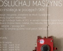 AktualnościFestiwaleSopot Non-FictionTeatr BOTO 30-31.08 Posłuchaj maszynisty, Sopot Non-Fiction z dnia 29 sierpnia 2014 „Posłuchaj maszynisty!” audioinstalacja w pociągach SKM Koncepcja i... Czytaj dalej