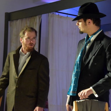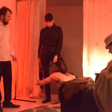 Zdjęcia z premiery spektaklu działającego przy Gminny Ośrodek Kultury w Luzinie Teatru Zymk, który jako pierwszy w historii zaprezentował sceniczną adaptację najbardziej znanej powieści Franza Kafki pt. „Proces” w języku kaszubskim. Pokaz w ramach finału wydarzenia „Kafka – przełamywanie granic” w Luzinie.