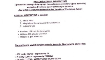 Pismo Dyrektora Opery Bałtyckiej Marka Weissa w sprawie referendum, którego chęć przeprowadzenia wyraził Związek Zawodowy NSZZ "Solidarność"....