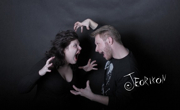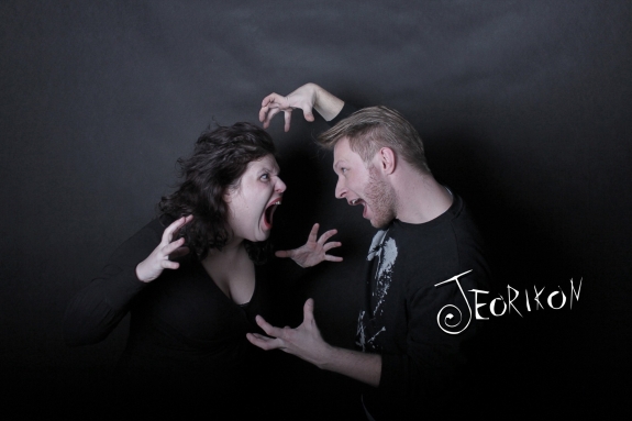 Karol Formela: Tak, to prawda. Podział naszych zadań wynikł zupełnie naturalnie! Magdalena ukończyła Państwową Akademię Teatralną w Warszawie i zajmowała się już zarówno reżyserią jak i scenariopisarstwem. Ja natomiast po ukończeniu Akademii Sztuk Pięknych w Poznaniu naturalnie zająłem się oprawą wizualną naszych produkcji. Projektowanie zawsze było tym, co szło mi zupełnie swobodnie i sprawiało ogromną przyjemność, dlatego też aspektami wizualnymi produkcji takimi jak plakaty czy scenografia zajmowałem się zazwyczaj ja. Nie będę jednak ukrywał, że nie przy wszystkich produkcjach. Na przykład plakat do „Zabić gołębia okruchem” przygotowała  Aleksandra Maj, a wizualizacje do „Wilka Stepowego” stworzone były przez Dariusza Skarżyńskiego. Nie mniej jednak faktycznie zazwyczaj zajmuję się stroną wizualną a Magdalena scenariuszem i reżyserią, chociaż w obu przypadkach nieustannie współpracujemy i wzajemnie się konsultujemy, a ostatni scenariusz klarował się w znacznej mierze przy wspólnych wysiłkach i balkonowym relaksie.